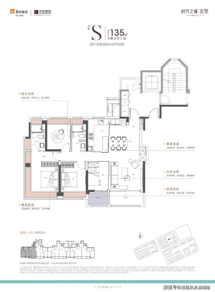 项目的中叠四开间朝南,超大IMAX的采光面,妥妥市区豪宅大平层的尺度感。