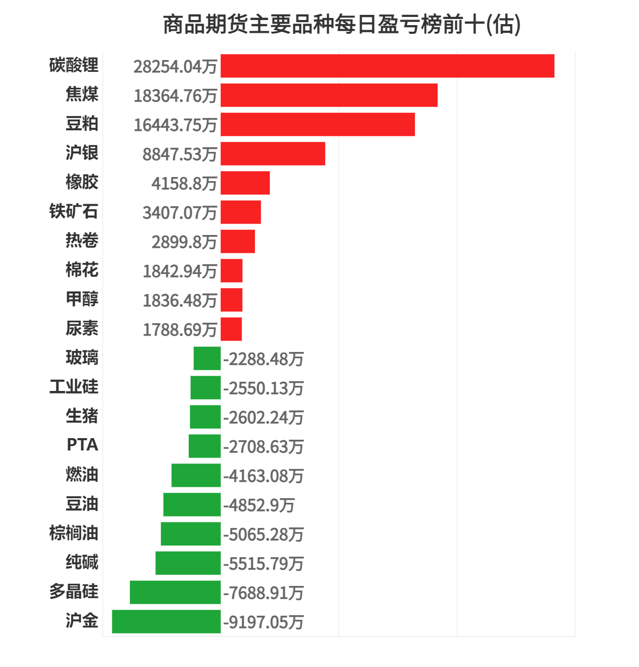 今日商品期货上榜机构席位中碳酸锂盈利第一,为28254.04万元。