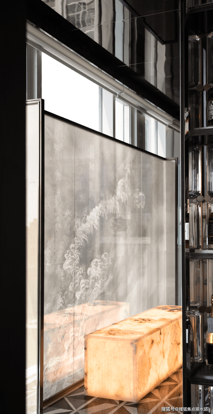 面对270°窗景的优势,设计师使用边几和单沙勾勒出一条观景走廊,日落瞬时的感性可以在此被捕捉。设计师的意图通过空间的质感与肌理得以具象化表达,与每位访客产生无声的对话。能以言说的,只是关于19T丨塔尖CLUB的冰山一角;更多的,则是非亲鉴不能表达的美好。