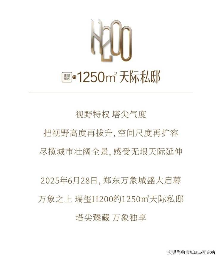 2025年6月28日,郑东万象城将非凡启幕,这座超级综合体将彻底兑现蓝图,为郑东再添一座”未来城市之心”,“万象之上”瑞玺,以建面约1250㎡顶奢天际私邸,再度点燃中原沸腾的目光。