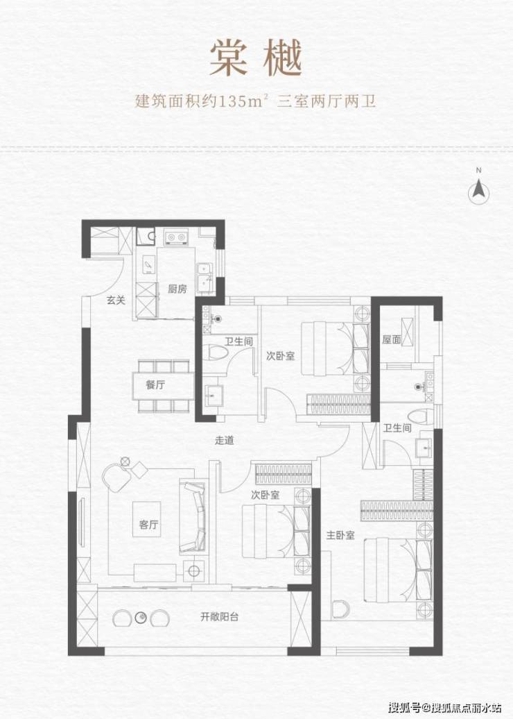 2️⃣棠樾丨建筑面积约135㎡ 三室两厅两卫————