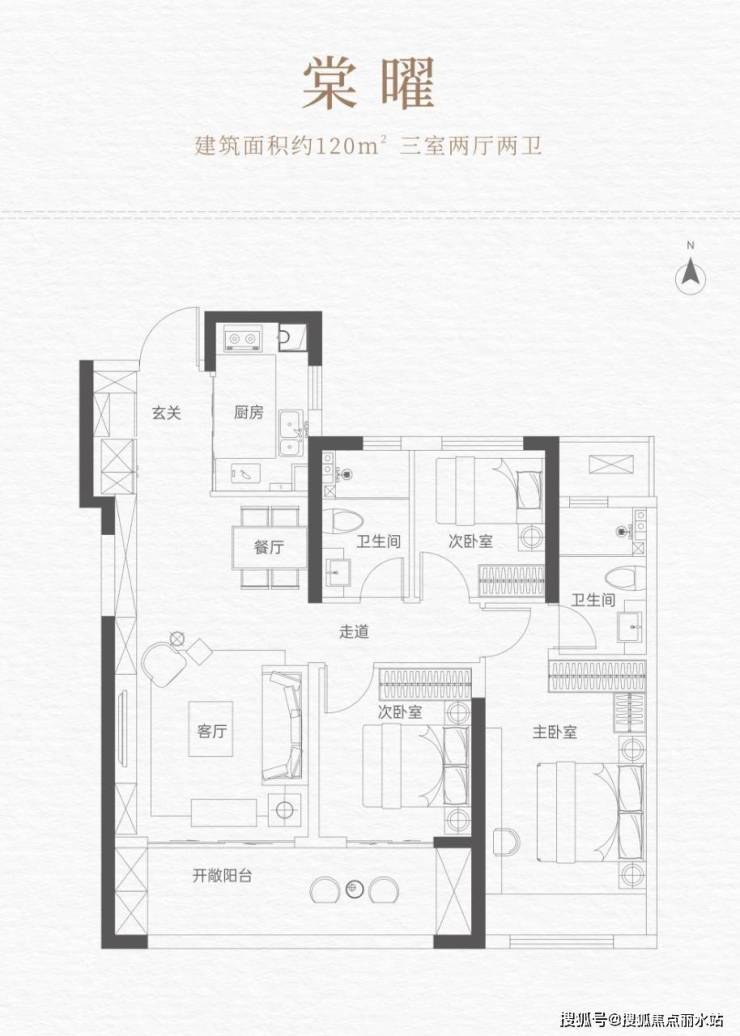 1️⃣棠曜丨建面约120㎡ 三室两厅两卫————