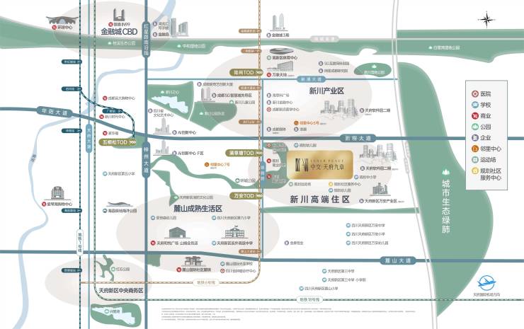 项目坐拥新川战略要地,15分钟直达金融城、天府大道商务带,完美实现工作与生活的平衡。