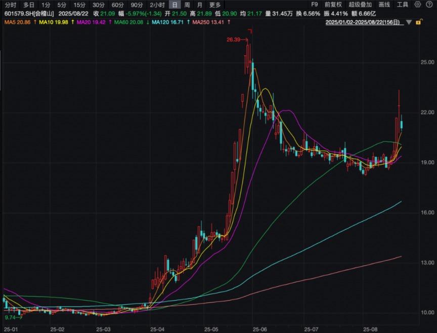 会稽山2025年半年报显示,截至二季度末,混沌投资董事长葛卫东以个人名义现身该股的股东名单,持有497.15万股,期末参考市值为9900万元,位列第八大流通股东;同时他的妹妹葛贵莲也成为新晋股东,位列第四名,持有1380.20万股,期末参考市值为2.75亿元。