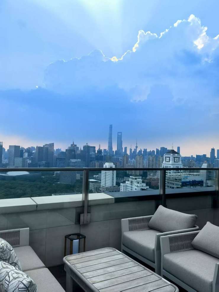 云端艺术场域:27层Sky Lounge落地窗揽入陆家嘴天际线,世纪公园绿意与画作交织。观展后,站在全景露台旁,窗外流云似与楼下会所中《天地色》系列作品对话,沉浸感拉满。