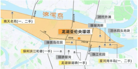 2024 年 12 月 5 日,南通亚伦以约 12.35 亿元总价竞得洛浦街新光快速东侧地块,后由龙湖以 1.4 万 /㎡低地价拿下,打造为龙湖亚伦央璟颂。龙湖向来以打造高品质改善产品著称,此前在番禺成功打造龙湖御湖境。央璟颂优势显著,近市区、双地铁、双面江景,还是洛溪全岛唯一新房新规产品。南向望三支香水道,与大石隔江相望,对面有星河湾、锦绣银湾、龙湖御湖境,江景宜人;北向天气好时可眺望珠江新城。洛溪岛高端改善氛围浓厚,老牌豪宅云集,且近 20 年无新增宅地,央璟颂作为容积率新规产品,在产品层面优势突出。此外,沙溪与珠江新城直线距离和三溪一样,均在 9 公里范围内。