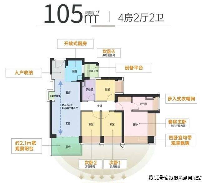 4开间约12m,全东南向采光,视野开阔,大套房主卧180度环幕采光景观,S型墙体设计冰箱位,使用空间利用更合理,客餐厅一体化设计,空间利用更高效,家人间互动交流感更强。