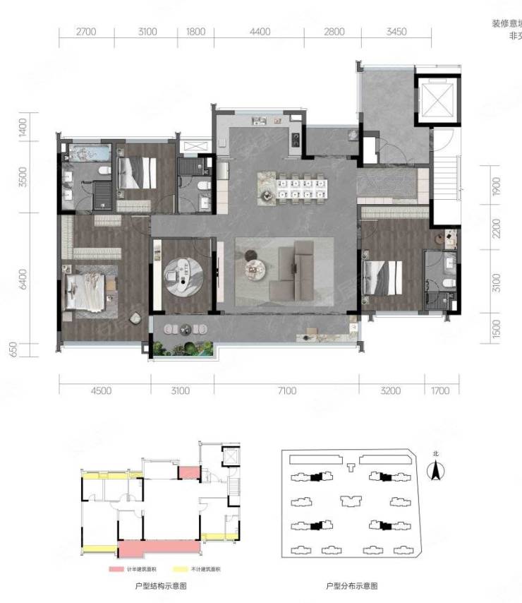 192㎡四居室-两厅三卫配置,彰显尊贵气度