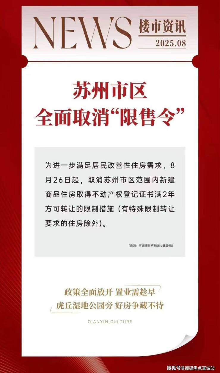 好消息!!即日起,苏州取消市区范围内新建商品住房2年深夜重磅!