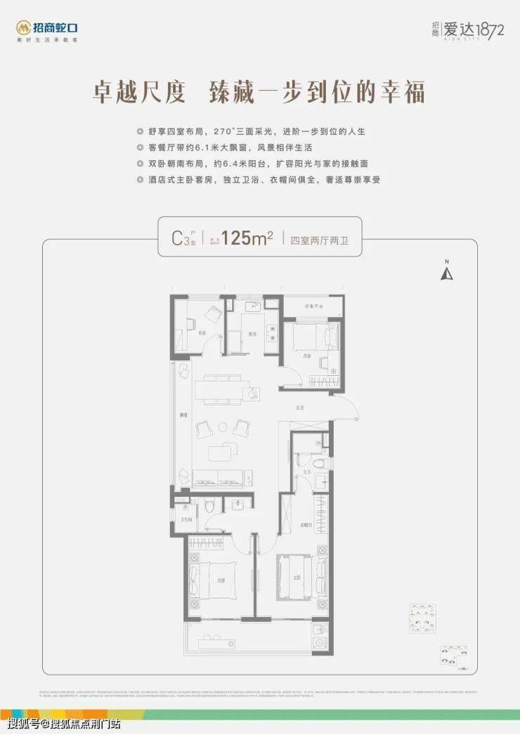 户型最小约106㎡三房两卫、最大约125㎡四房两卫,精装限价23600元/㎡。