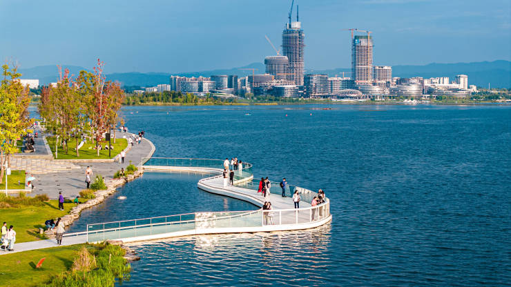 成都未来城市新中心·兴隆湖芯前瞰兴隆湖·后依鹿溪河生态区近邻天府新区第一小学·华西系医疗健康护航双中庭宽境住区·公园环抱隐奢生活