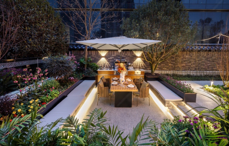 通过退台式建筑设计,使得上叠户型拥有三个阔绰尺度露台。主客厅和主卧室外的露台均超过50米。室内和户外空间的无缝对接,实现一面享受明媚眼光,一面感受温暖如春。