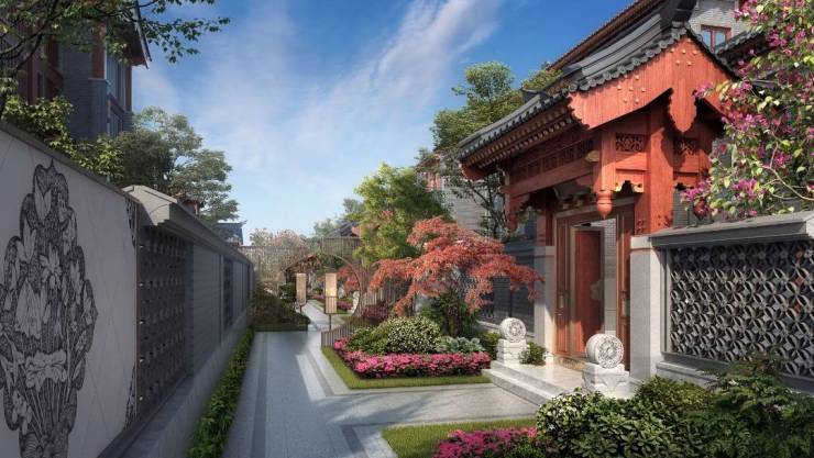 叠院:九栋京派官式风格臻稀叠院,一面红墙、一抹飞檐、一排瓦当尽显千年文化符号。