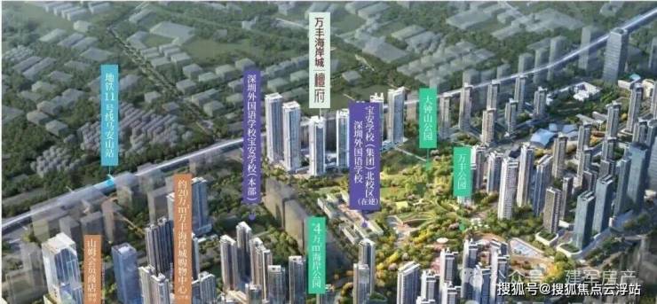 2、周边配套成熟:项目周边已有多个现成的商业和教育配套,如万丰海岸城购物中心、深圳外国语学校宝安学校等,还有海岸城商业和山姆会员店等