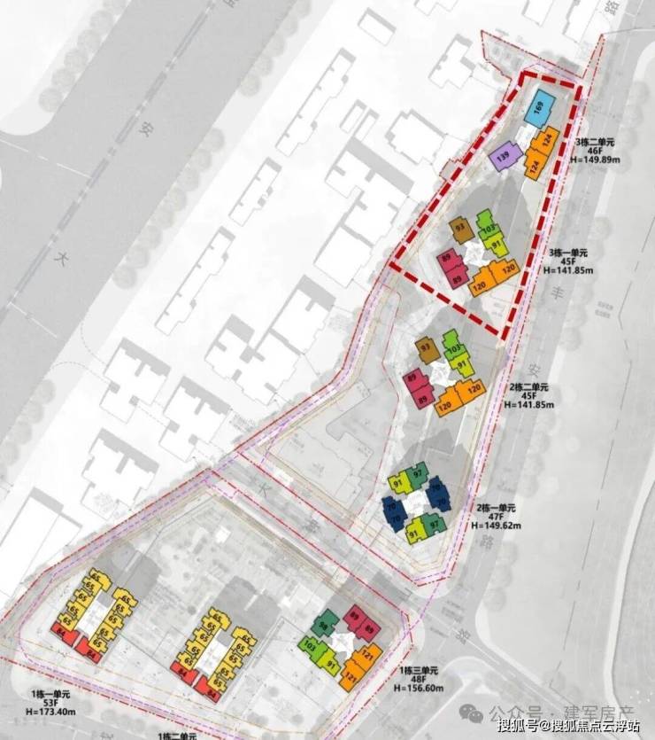规划建设3栋(48-53层)超高层住宅,总户数1396户,其中保障房1104户,普通商品房住宅292户,机动停车位1411个。