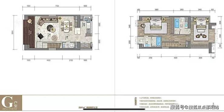 88㎡复式三房两厅三卫 南北通透,5.4米大开间,复式下层餐厨客厅连宽景阳台,复式上层私密卧房全明采光,动静分区私享个性生活。