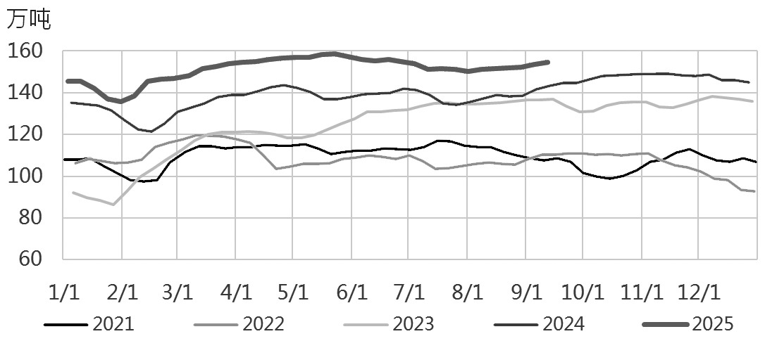 需求方面,截至9月11日,国内聚酯行业周度产量为154.68万吨,环比增加1.14万吨,增幅为0.74%;周度平均产能利用率为87.9%,环比上升0.56个百分点。周度产量及产能利用率小幅提升的主要原因是新装置投产和检修装置重启。