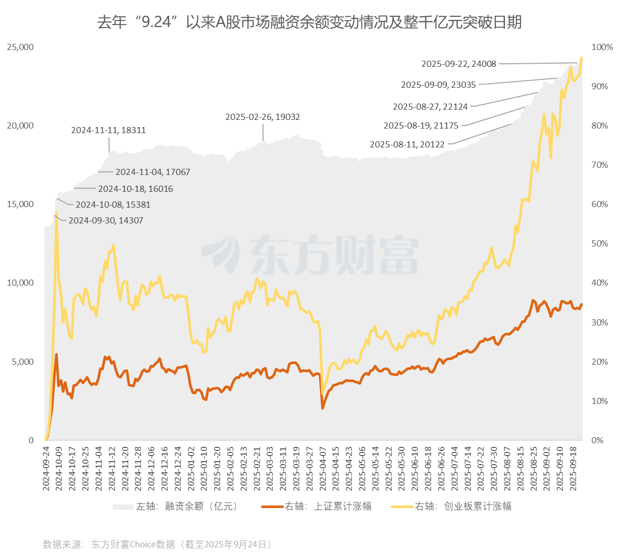 进入三季度以来,这一增长势头仍未减弱。Wind最新数据显示,截至9月23日,A股融资融券余额为24167.88亿元。其中,融资余额为24000.41亿元,融券余额为167.47亿元。