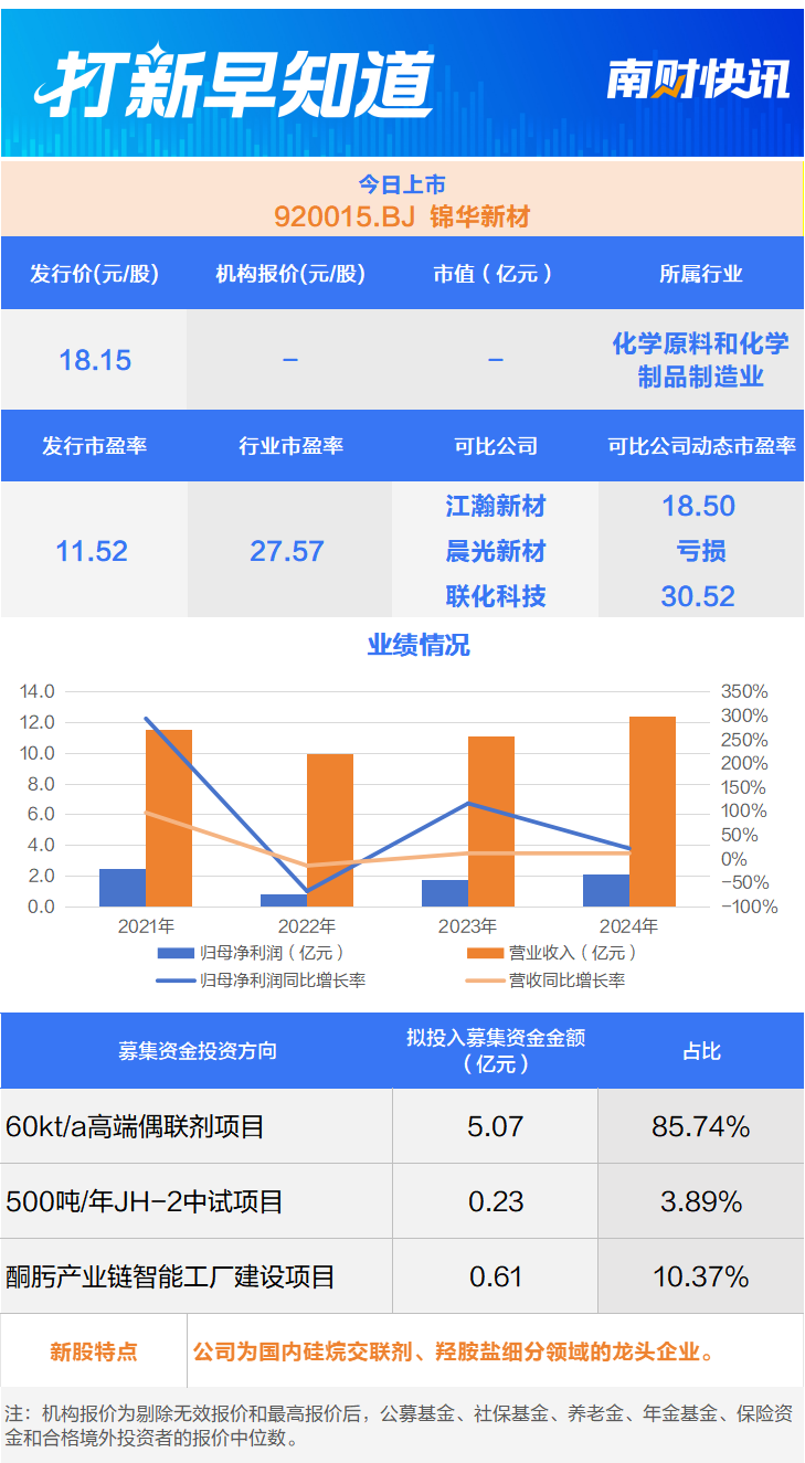 新能源汽车动力系统、医疗器械、精细化工 三领域龙头股今日上市丨打新早知道