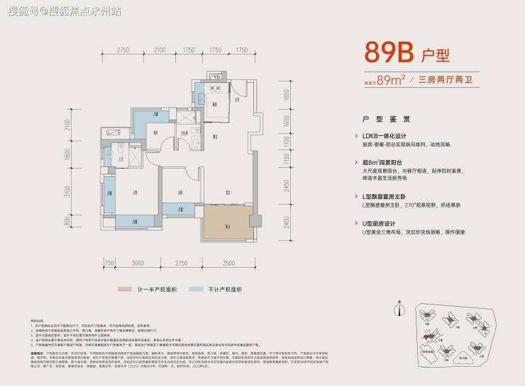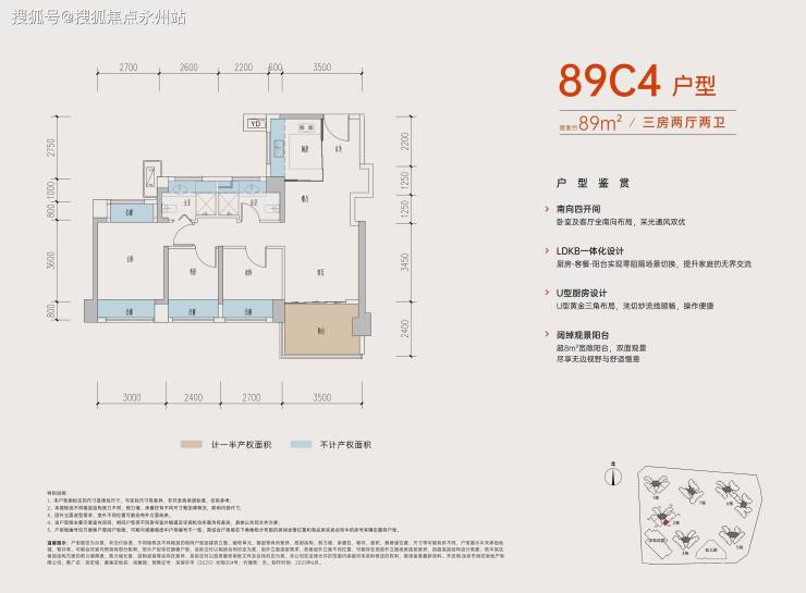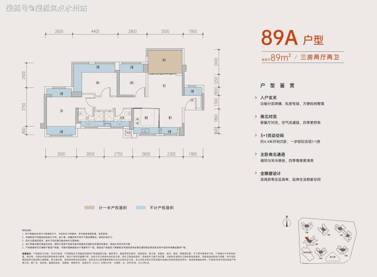 89㎡A横厅(3+1房 南北通透)总价293-308万 | 通透格局,采光通风俱佳。