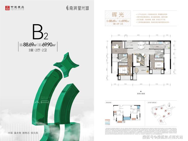 88㎡稀缺小三房:双卫配置,刚需上车门槛低,户型方正无浪费。