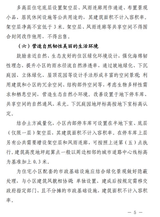 再比如,多高层住宅底层设置架空层、风雨连廊用作通道、布置景观小品、居民休闲设施等公共用途的,其建筑面积不计入容积率。这将推动房企把好设计从过去的“经济负担”变成了提升产品溢价和品牌价值的主动选择,激活创新意识。