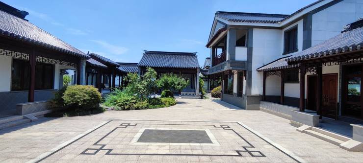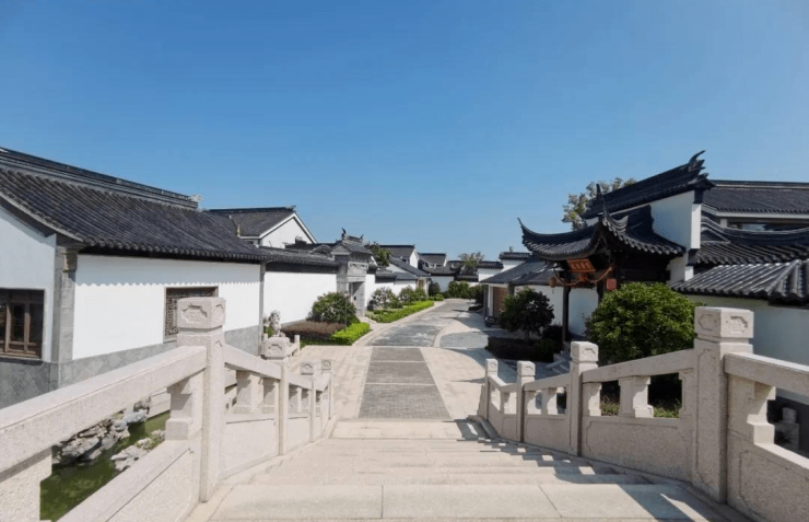 由”香山帮”非遗匠人打造苏式园林,粉墙黛瓦,户户”一院一景”,含太湖石、廊亭等传统元素