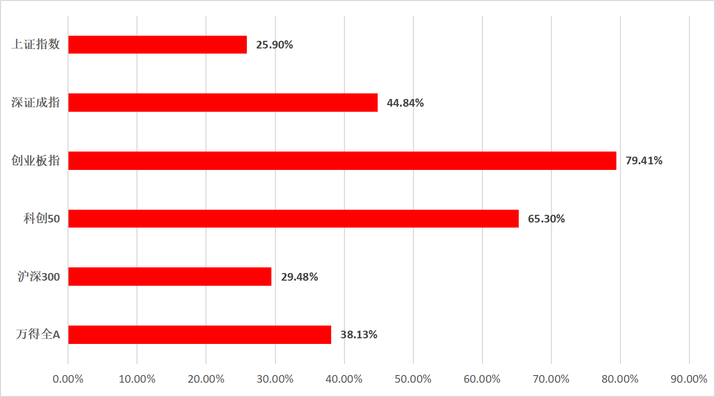 图:A股部分指数相较于今年4月低点的涨幅情况(截至9月26日)