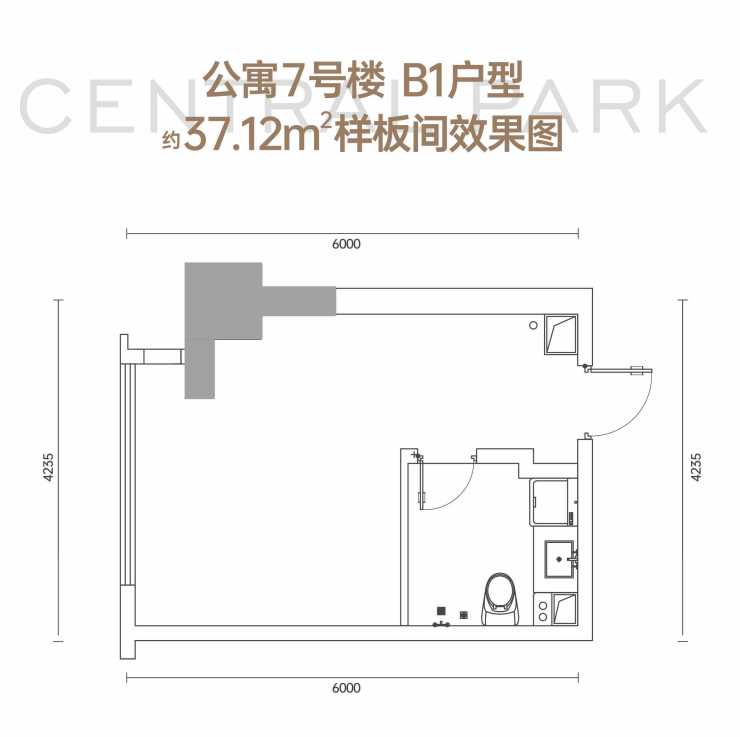 公寓7号楼B1户型37.12平米样板间效果图