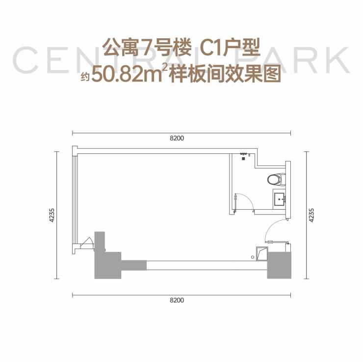 公寓7号楼C1户型50.82平米样板间效果图