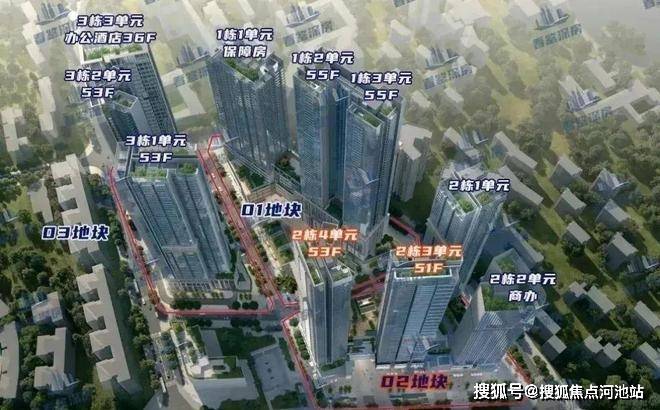 规划为3栋超高层塔楼住宅+幼儿园,1栋一、二单元193米55层,1栋三单元为保障房157米44层。规划1038套,其中保障房612套+回迁179套+可售247套,停车位834个。