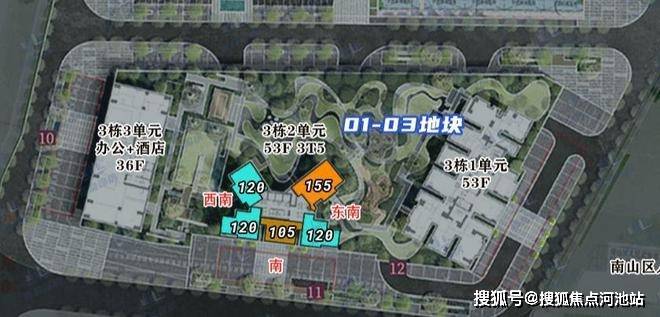 03地块,规划总建面约17.6万㎡,容积率11.44。规划住宅建面约7.65万㎡,商业建面约1.5万㎡,办公面积约0.6万㎡,酒店约1.9万㎡。