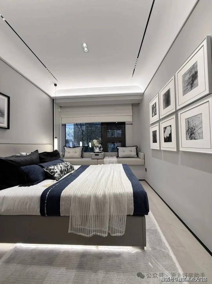 主卧转角落地窗+飘窗,也算是非常少见的了。净面宽约3.6m,不算进门的衣柜,进深大约5.7m左右。根据测算,可以放置宽约2m的床+2个床头柜(宽度约45cm/个)是可以的。