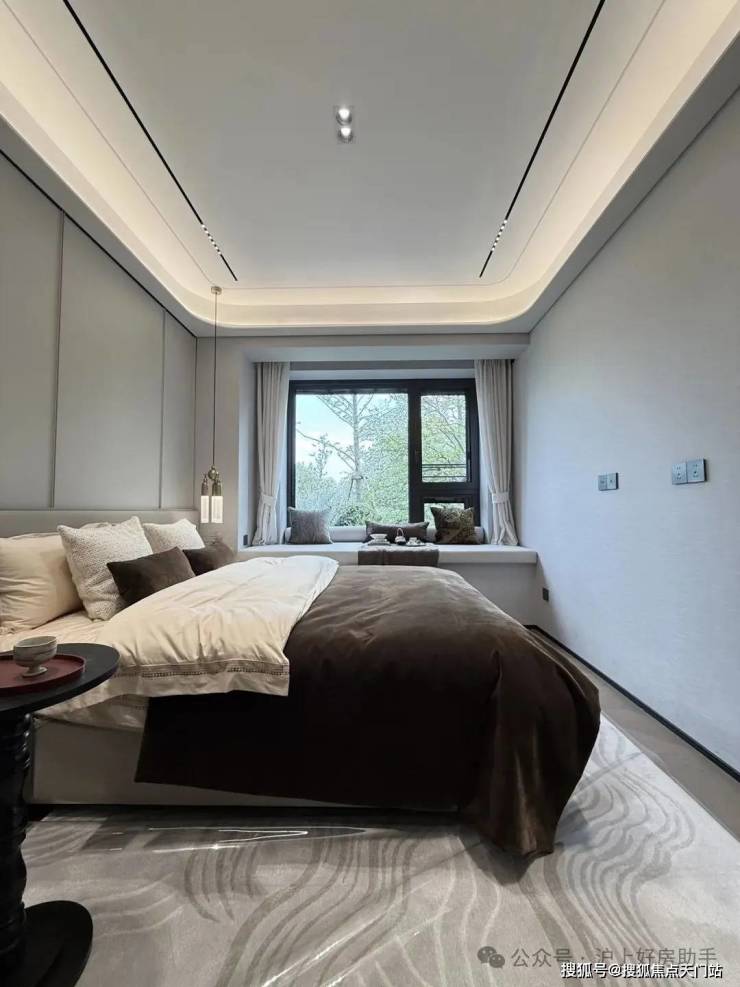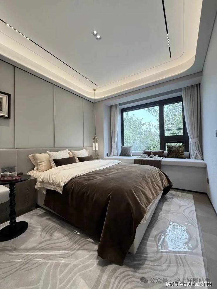 其中主卧的270°转角飘窗就有约5.7m²,通过与外立面的结合,直接做了梳妆台和储物柜,拓展了飘窗的实用性。