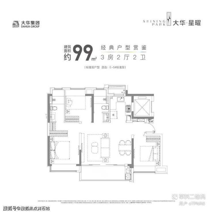 星曜华庭99㎡3房2卫是项目的主力户型。四开间朝南,大横厅的设计,让这个户型有着不亚于宽绰大三房的尺度感和采光面,再加上宽景阳台的设计,这个户型的居住舒适度在同面积段户型中,称得上出类拔萃了。另外,3房2卫5飘窗的设计,保证了主人的私密空间,也保证了室内的收纳空间。
