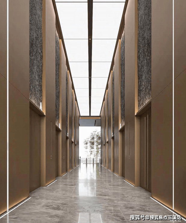 首层大堂:挑高约9.8米,建筑面积约1300㎡,地面及墙面均采用全天热石材装饰,彰显高端产品属性