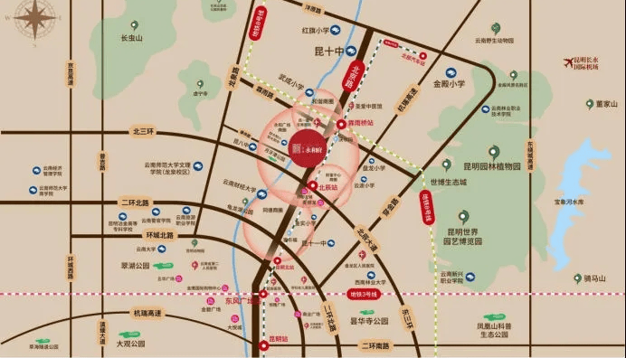 医疗:紧靠三甲医院昆明市第一人民医院北院区(昆明医学院附属甘美医院),中国人民解放军五三三医院瑞奇德医院、红云医院、圣爱中医馆、盘龙区人民医院、市妇女儿童医院等医疗资源
