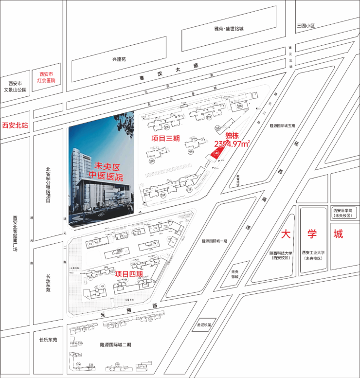 隆源国际城独栋现铺: 项目西侧为高铁新城起步区,规划多栋高层建筑,最高达350米,形成西安北客站旁“最都市”天际线。**西安云谷已落定西安北客站南广场,占地56亩地,容纳2栋超高层(150米+250米),去年4月份已经开始建设,现已进入实质性建设阶段;