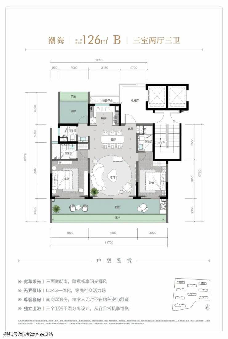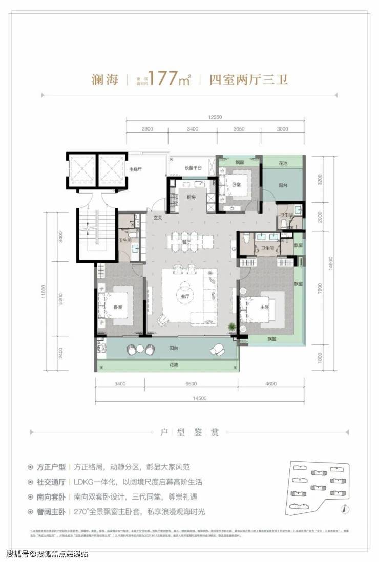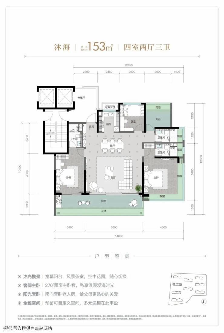 规划建筑面积约126-213㎡观海奢装大平层,约3.1米阔绰层高,部分户型创新设计270°全景飘窗主卧套、四开间朝南等,全成品高标奢装,营造全新舒居体验。