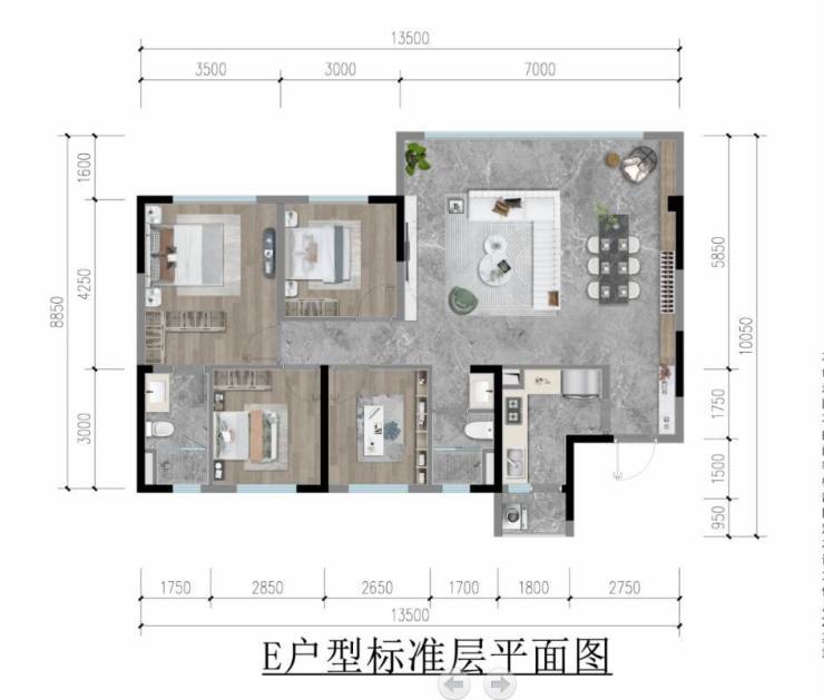 光樾:建面约120㎡四室两厅两卫(16F小高层,2梯4户)