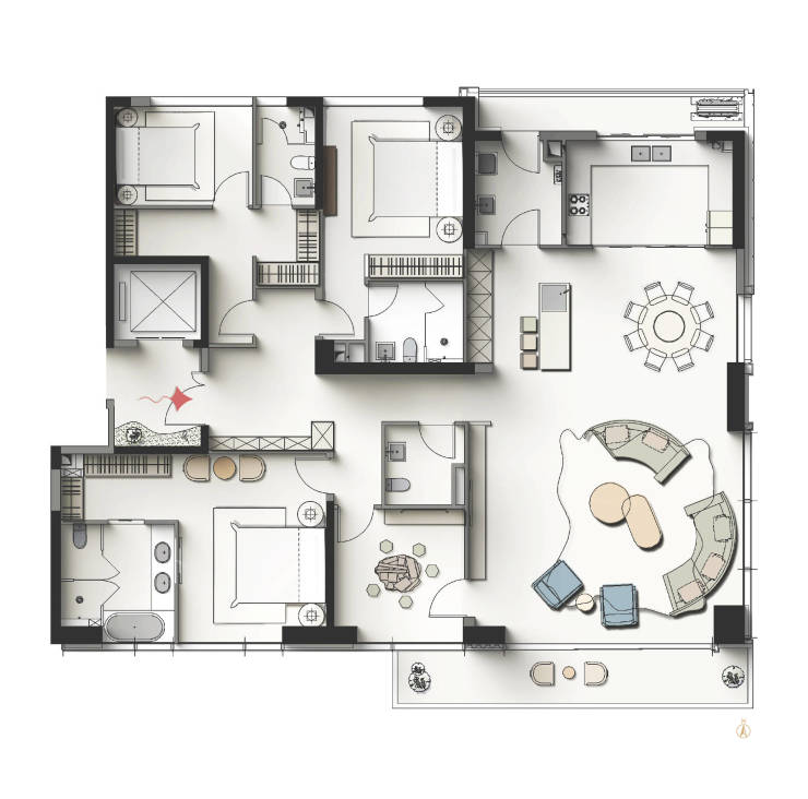 一种“高阶的静谧”、一份“诗意的留白”、一处“奢华的秘境”跃然而出,构成枫丹隐秀标签化的独特产品气质。