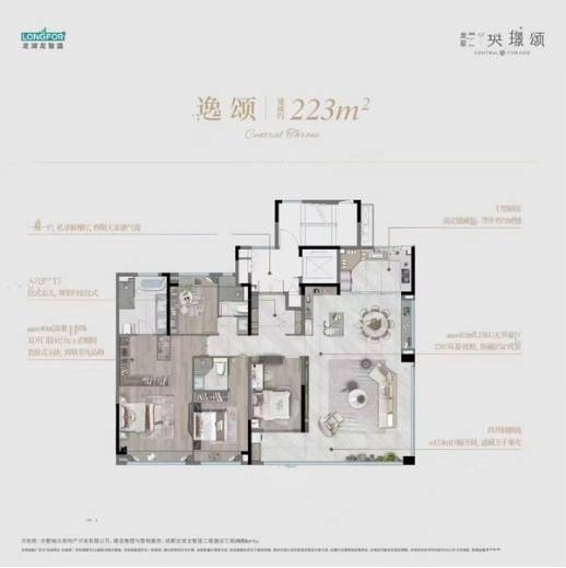 龙湖亚伦·央璟颂在户型设计上也是多样的,建筑面积约143-223㎡的低密洋房大平层,满足了不同家庭的需求。私梯入户的设计,让业主尽享尊贵生活。而270度的环幕视野,让业主在家中就能领略到城市的繁华与美丽。