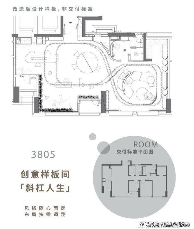 以斜杠人生为主题的创意样板间:得益于空间的灵活多变性,打破了原有格局,工作生活场景多元且人性,白天可以是产品设计室,夜晚变身私人酒廊;轻松实现设计师/博主/主理人等身份一键随心切换。