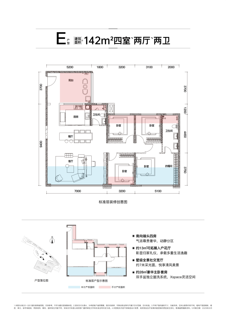 T4——142㎡南北向奢阔型四房,使用率约106.51%