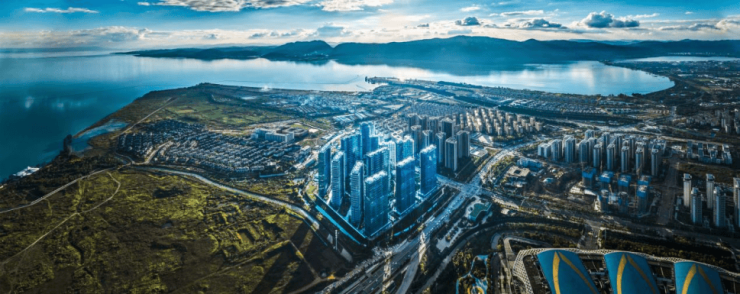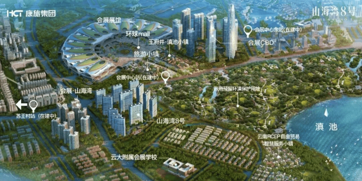 滇池国际会展中心位于滇池唯一天然形成的滇池三个半岛上(福保半岛、星海半岛和宝丰半岛),目前这三个半岛只有福保半岛规划有建设用地,其中山海湾8号也是在滇池半岛环湖东路以南的唯一高层住宅用地。