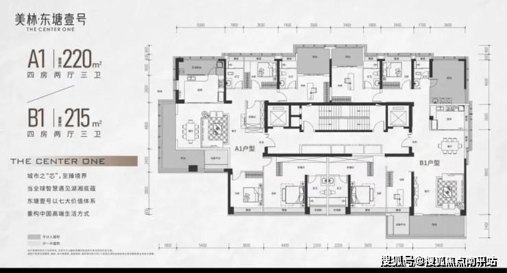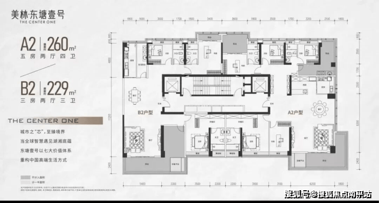 论规模,项目属于市中心袖珍盘,总建面仅约5万方,主推约215-260㎡健康科技精装大宅,新规户型得房率均超100%↓