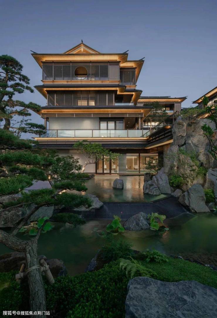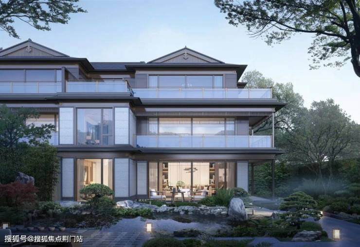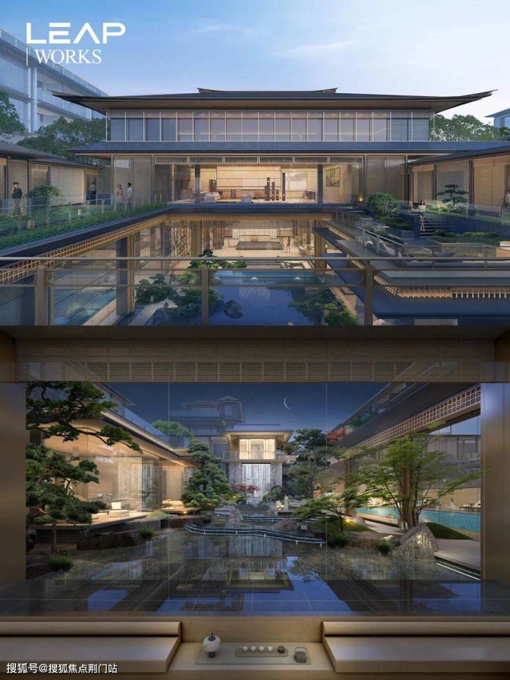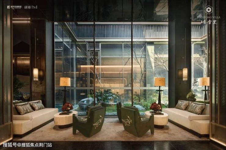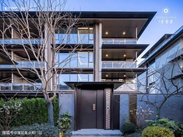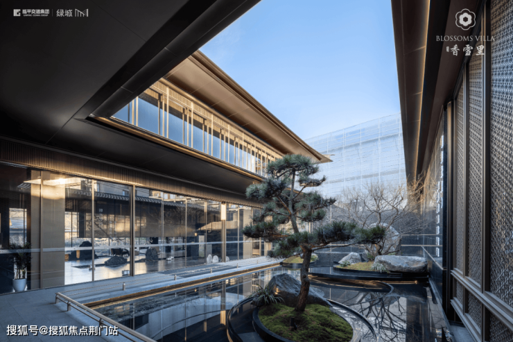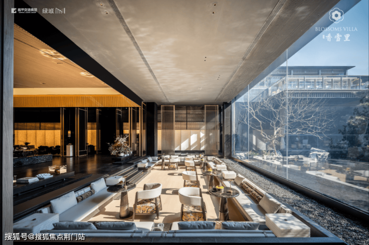 建筑立面:古今交融的诗意表达:外立面以香槟金铝板为基调,搭配蓝眼睛石材与玻璃幕墙,融合传统歇山重檐、纳福悬鱼等元素,既保留宋式建筑的对称美学,又赋予现代建筑的轻盈通透。合院组团采用三面庭院设计,L型景观面与环绕式檐廊,将超山梅影、丁山湖光引入每一扇窗景!