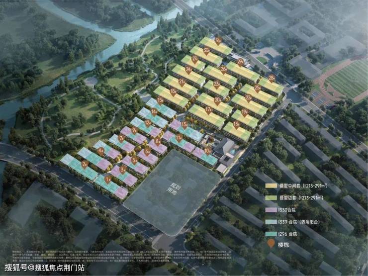 项目定位为高端排屋及叠排社区,建筑设计以新宋风为特色,融入超山宋梅古韵的历史人文底蕴;整体布局以中央山水景观轴为骨架,营造“一轴一带八景十巷”的多进式园林体验。并且该地块西面为超山名胜风景区,西北面有丁山湖和塘栖古镇景区,整体山水资源丰富,呈现“蓝绿相织,山水相连”格局。