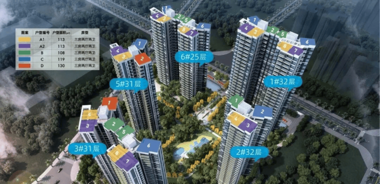 楼层总高:1#楼32层,2#楼32层,3#楼31层,5#楼31层,6#楼25层;