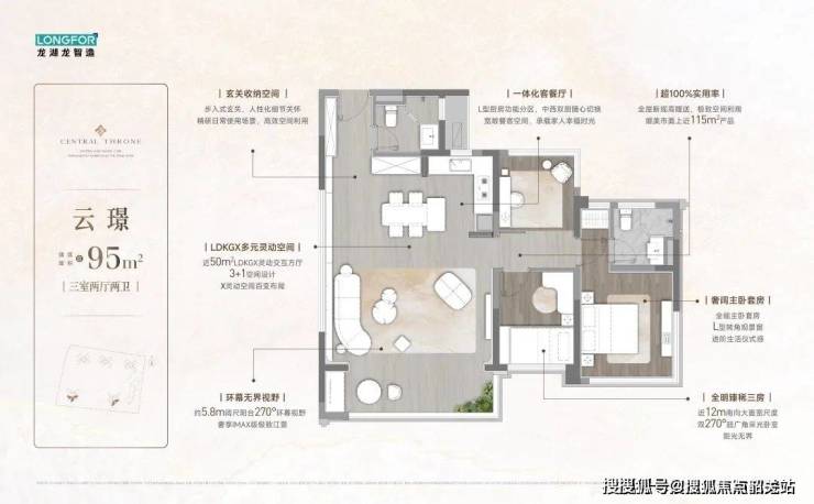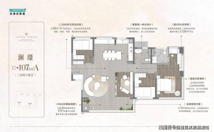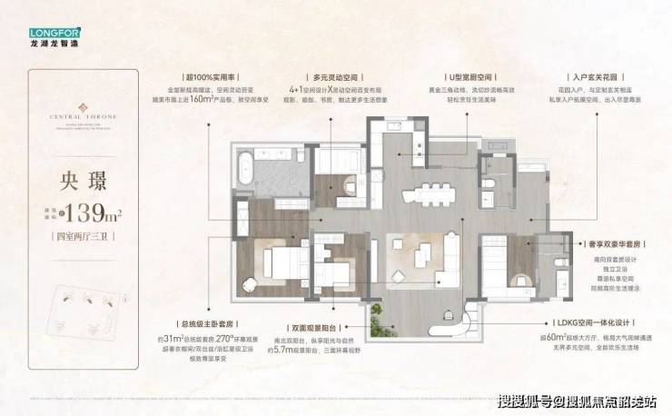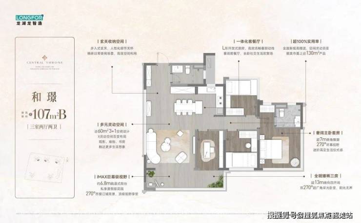 产品稀缺性:区域内唯一低密科技住宅,得房率83%-130%,远高于周边竞品。95-223㎡高得房率户型,部分户型赠送面积37㎡,LDKB一体化空间达65㎡。